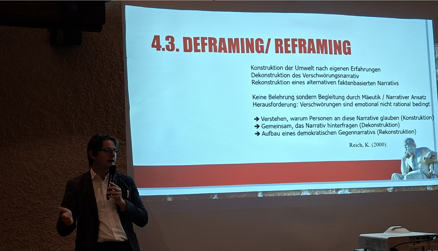 Stephan Raab während seines Vortrags. Mit welchen Methoden können wir dem Populismus begegnen - als Beispiel nannte Raab Deframing.