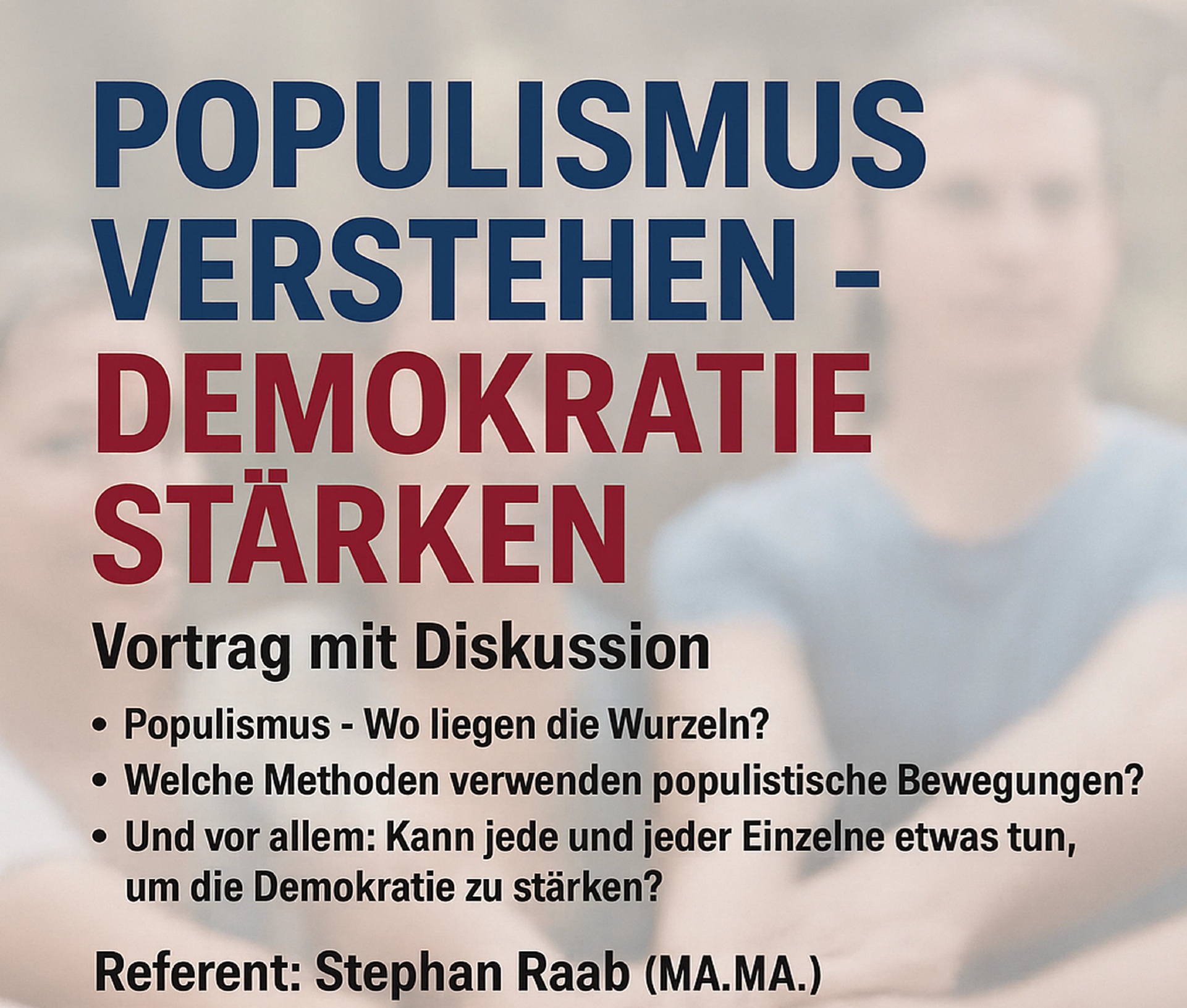Stephan Raab stellte die Ursachen des Populismus dar, welche Symptome Populismus aufweist, und welche Abwehrkräfte eine Demokratie hat.