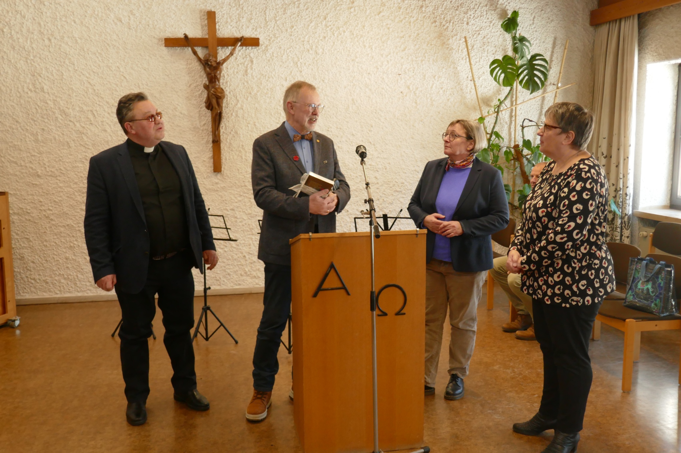 ![]() Pfarrvikar Vasile Vulpe, Referent Wolf Maser, Pfarrerin Beate Kimmel-Uhlendorf und KOR-Vorsitzende Regina Serfort |