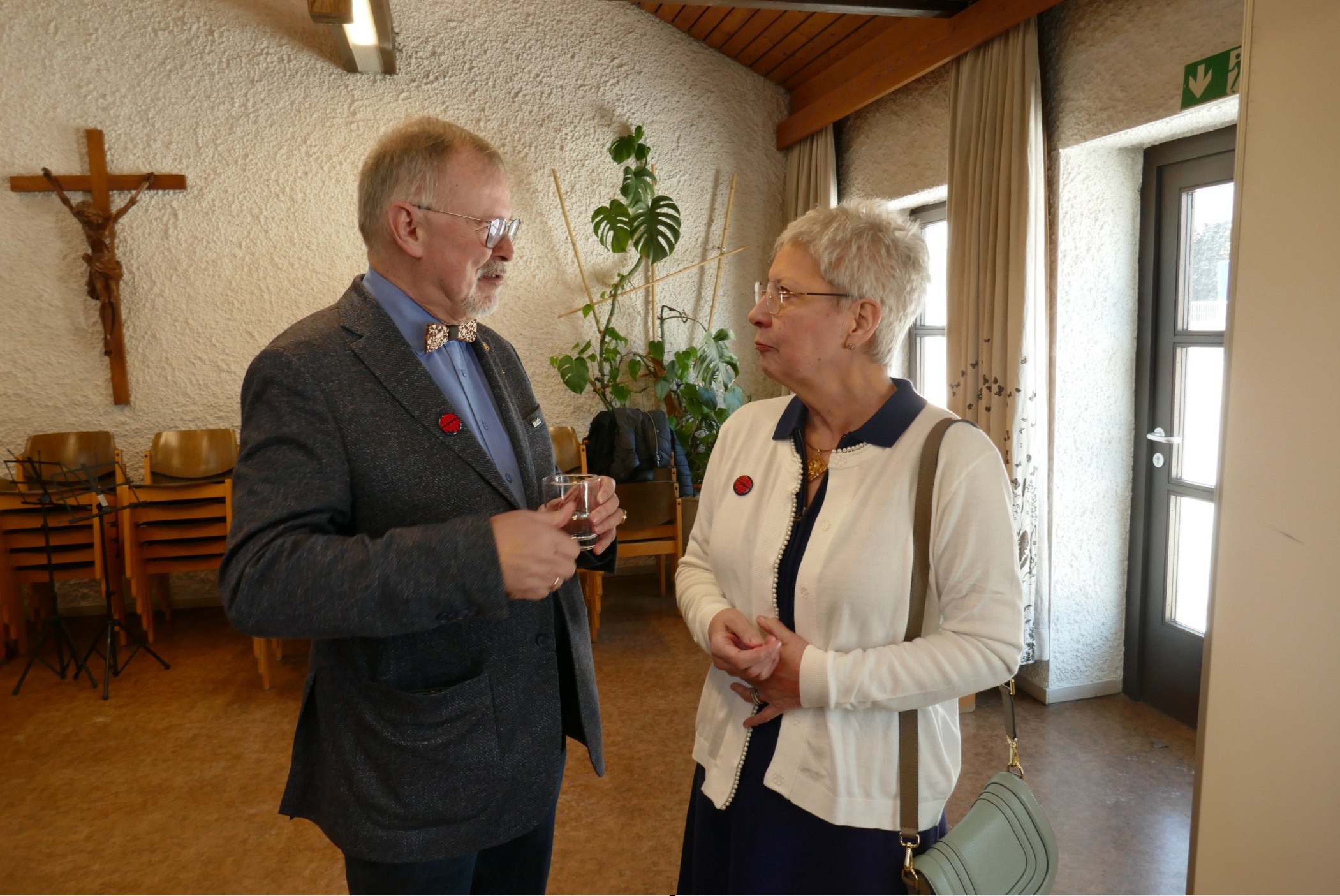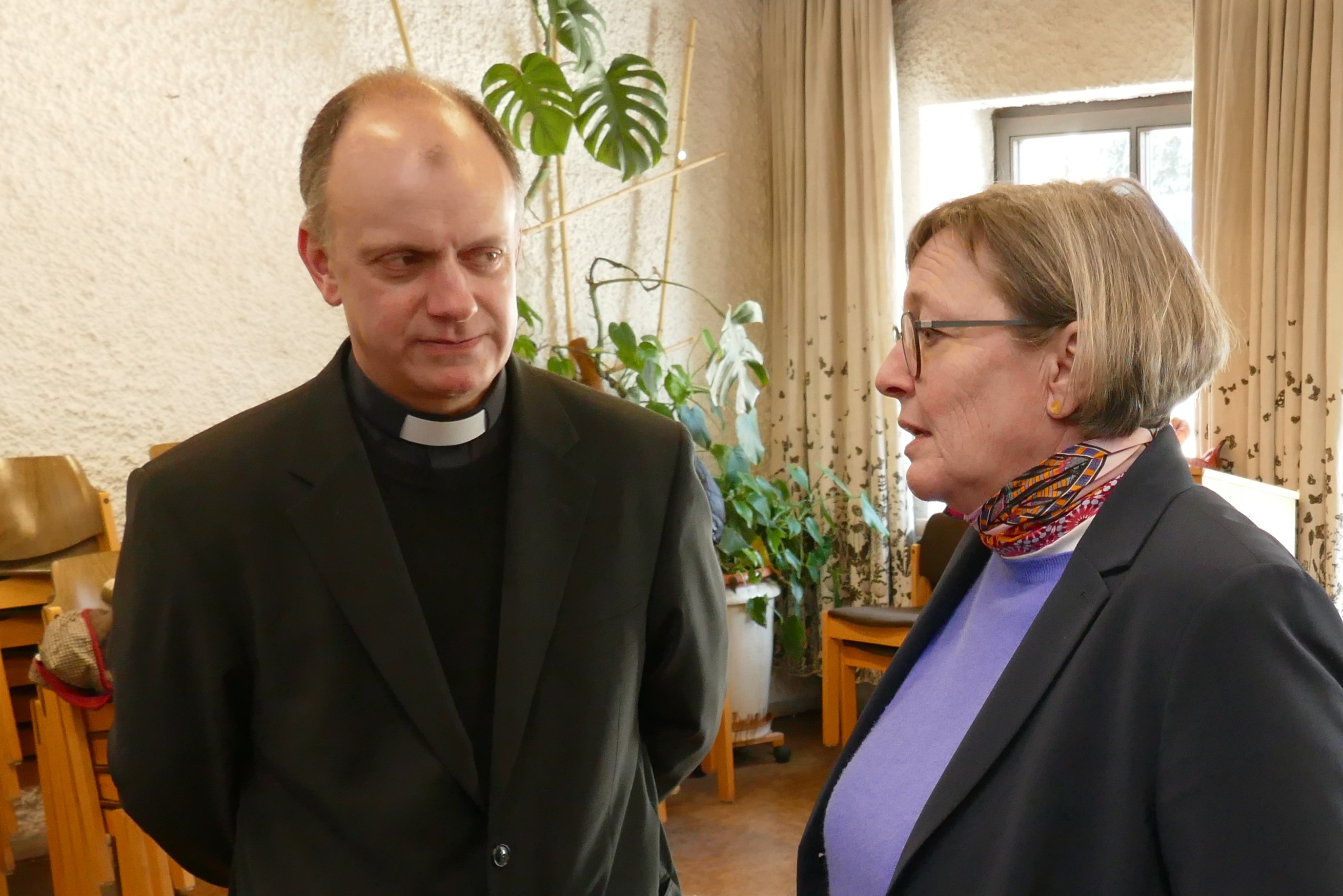 ![]() Die beiden verantwortlichen Theologen Dekan Karsten Junk / Pfarradministrator im Pfarrverband und Beate Kimmel-Uhlendorf / Pfarrerin der Osterkirche tauschen sich aus. |