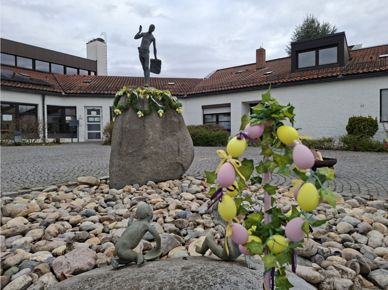 Die Feierlichkeiten der Heiligen Woche begannen auch in Corpus Christi mit dem Palmsonntagsgottesdienst. Der Osterbrunnen war bereits geschmückt.