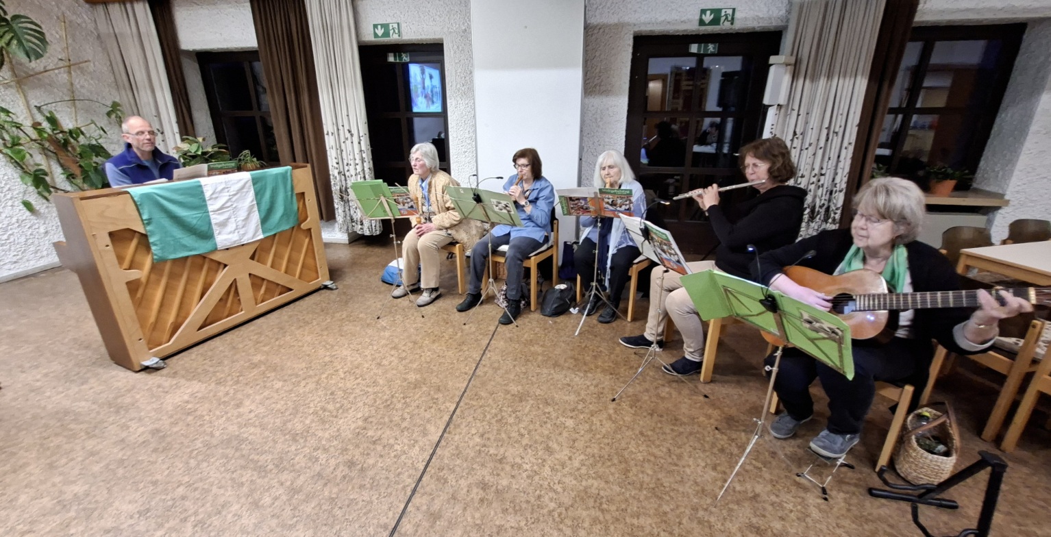 ![]() Musiker des Ginko-Kreises und Christian Viefhaus am Klavier begleiteten die Lieder. |