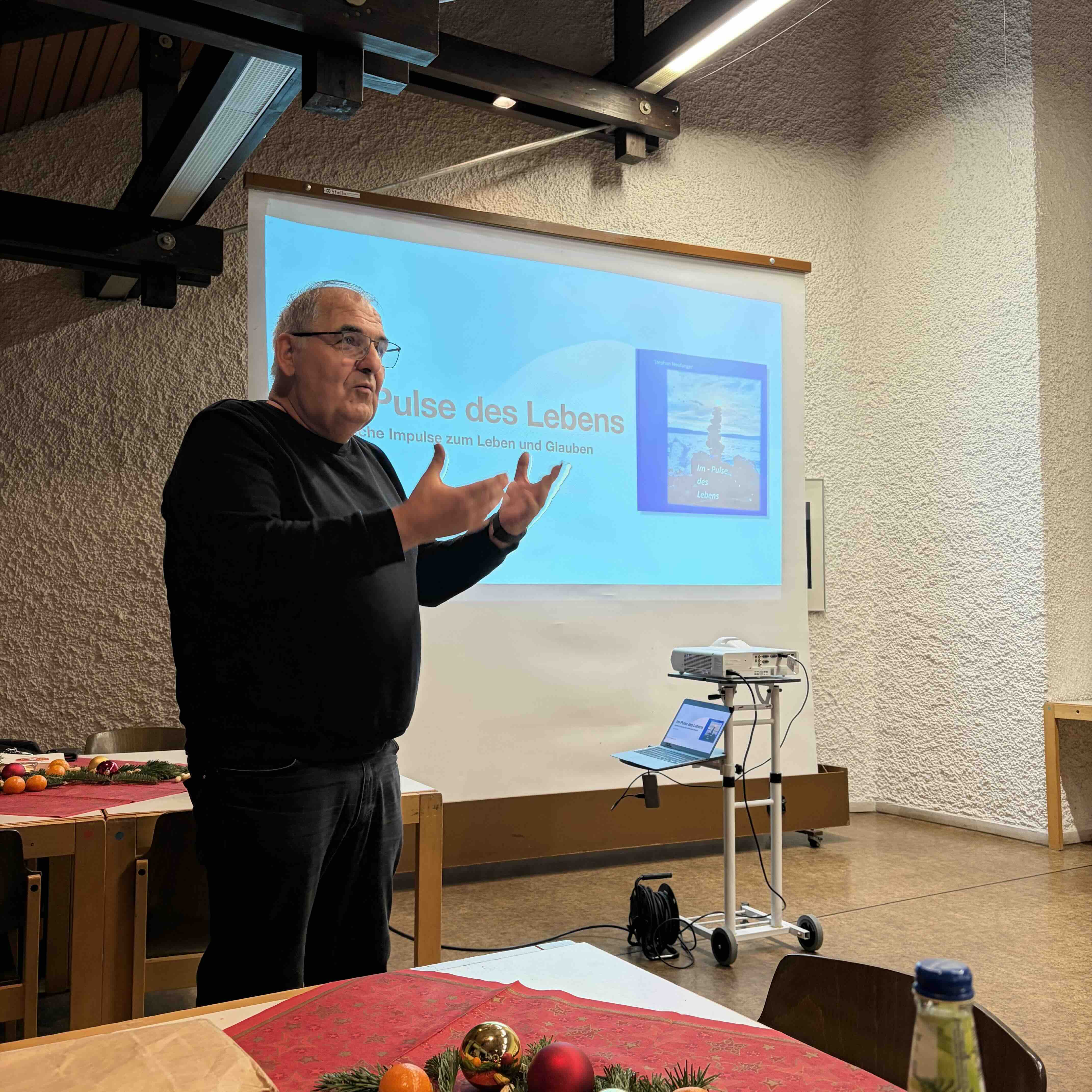 Am Mittwoch, den 17. Dezember 2025, lud der Kirchortsrat Corpus Christi zu einer besonderen Veranstaltung in den Pfarrsaal. Rund 30 Gäste folgten der Einladung und erlebten eine eindrucksvolle Lesung mit spirituellen Impulsen unseres ehemaligen Pfarrers Stephan Neufanger aus seinem Buch „Im-Pulse des Lebens“.
