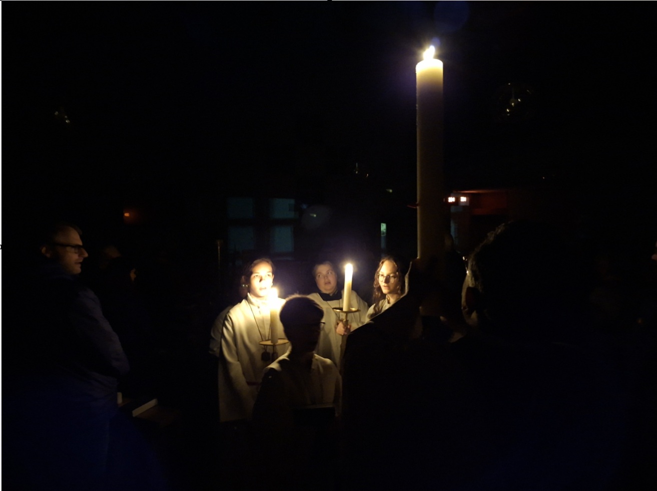 In der Osternacht feierten die Gläubigen in der voll besetzten Corpus Christi Kirche die Auferstehung des Herrn - Jesus Christi. Mit dem dreimaligen Ruf "Lumen Christi" wird das Licht Christi besungen. Traditionell bringen die Gläubigen ihre