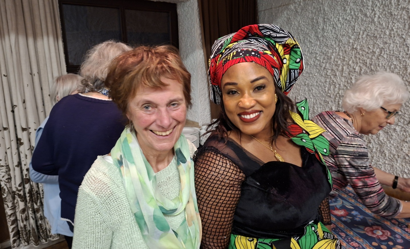 ![]() Lasten-Trägerinnen - das Titelbild des WGT 2026 ![]() Blessing, eine Frau aus Nigeria, kam auch zum WGT-Gottesdienst und trug mit ihren Speisen zum Buffet bei. Sie ist hier mit Marianne zu sehen. |