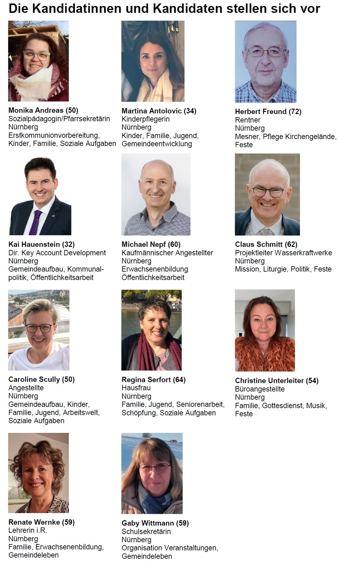Der Wahlausschuss veröffentlichte die Kandidatenliste am 16.01.2026. Bei Fragen gehen Sie bitte auf die Mitglieder des Wahlausschusses zu: * Karoline Viefhaus (Vorsitzende) * Hubert Köhler * Caroline Scully * Vasile Vulpe (Pfarrvikar)
